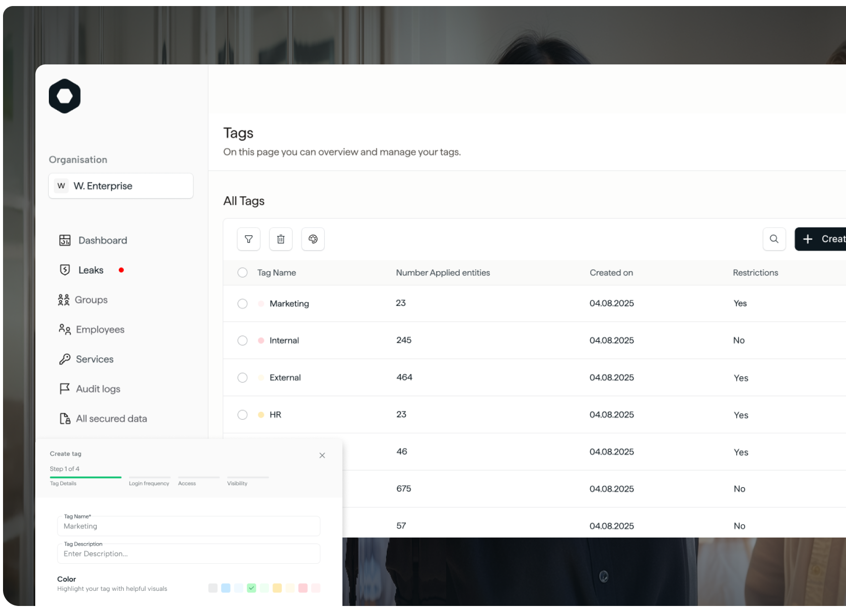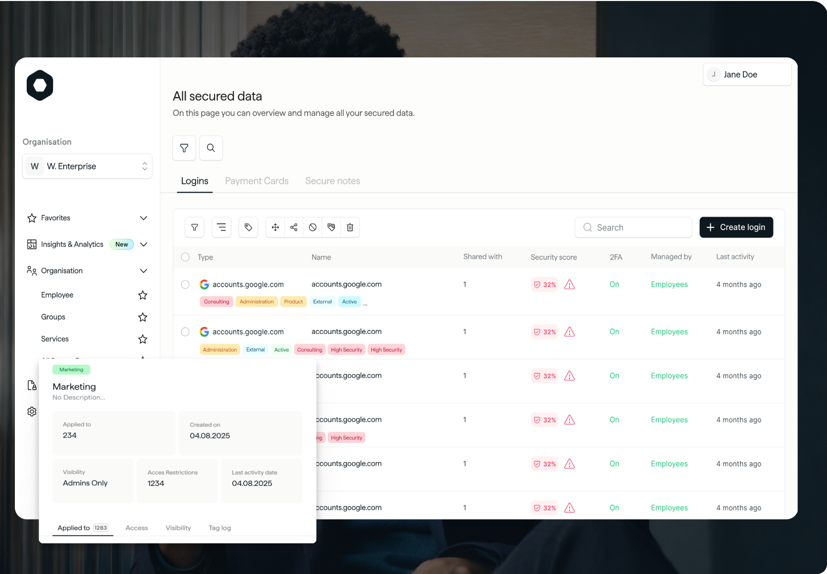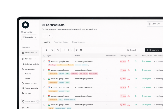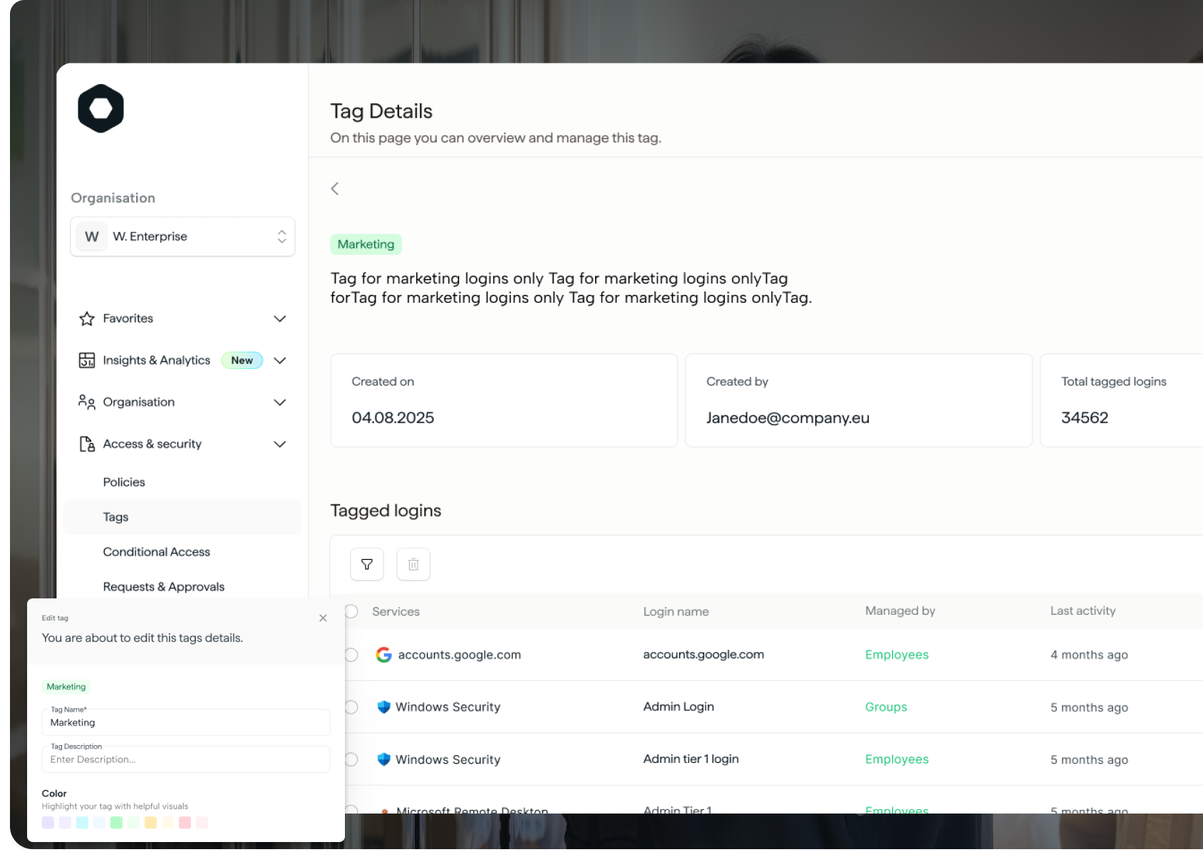As your organisation grows, secure data becomes harder to organise and oversee. Tag Management gives IT a scalable way to classify logins across teams, services and risk categories, directly from the Admin Portal.